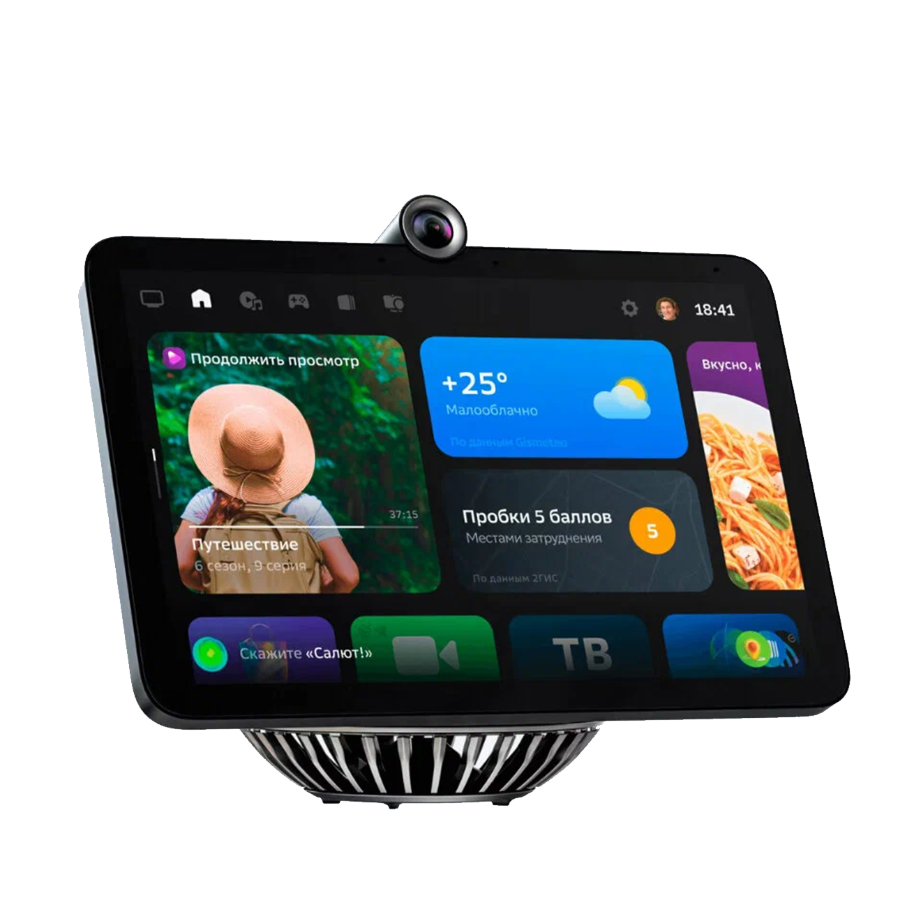 SberPortal — это умный дисплей с голосовым ассистентом Салют, объединяющий мощный звук от Harman/Kardon, 10-дюймовый сенсорный экран и управление умным домом. Идеально подходит для видеозвонков, просмотра контента и организации вашего дня.
