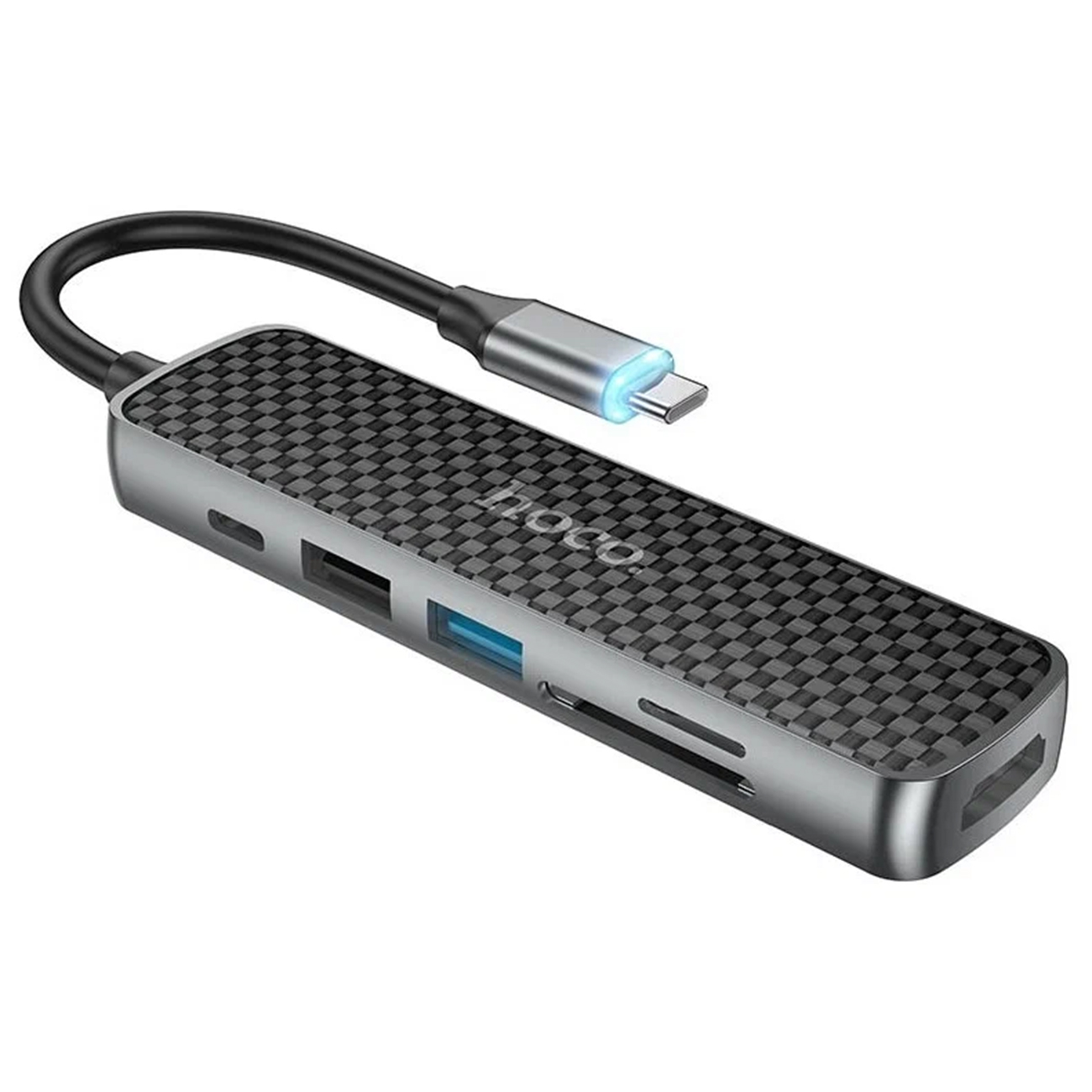 Переходник Hoco Type-C на HDMI/USB3.0/USB2.0/SD/TF/PD, черно-серый