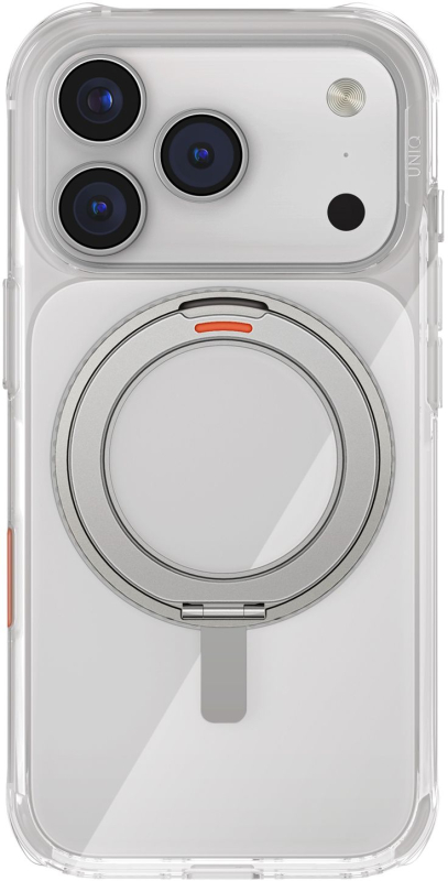 Чехол Uniq Swivix с поворотной подставкой 360° для Apple iPhone 17 Pro, Lucent Clear (прозрачный), MagSafe — MagClick™, встроенная подставка и надёжный хват