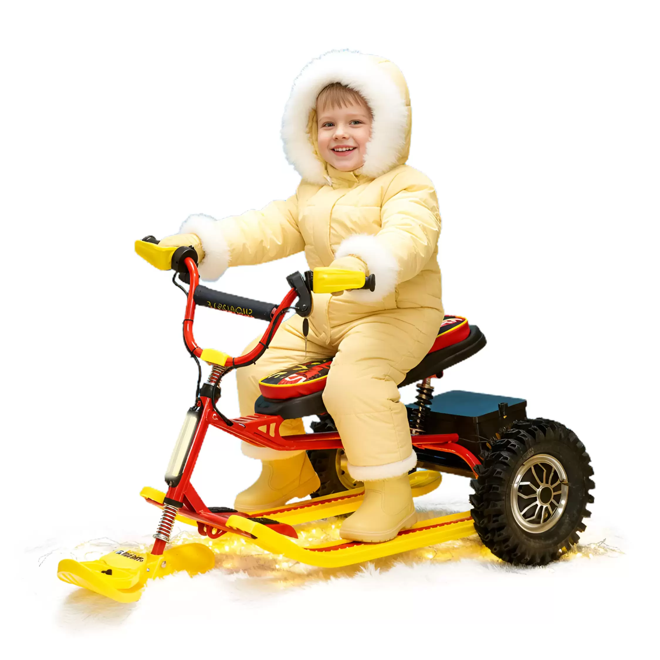 Снегокат электрический "iBrat S2" в ярких, красном с желтым цветах — это идеальное решение для зимних развлечений! Этот снегокат подарит вашему ребенку незабываемые моменты радости и веселья на свежем воздухе, будь то зимние каникулы или выходные.